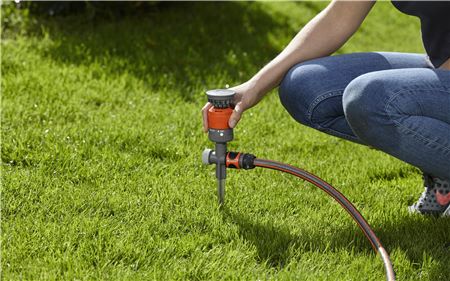 Kruhový zavlažovač umožňuje rovnoměrné zavlažování zahrady ploch do 225 m2 a má maximální dosah 8,5 m. Zavlažovač je vybaven 7stupňovým nastavením výsečí v krocích po 45° od 90° do 360°. Lze jej individuálně nastavit podle vaší zahrady. Rovnoměrnou distribuci vody a individuální nastavení směru postřiku zajišťuje speciální otáčecí turbína. Pro zavlažování velkých ploch lze vzájemně propojit více zavlažovačů - stačí vyměnit koncovou krytku za přípojku na vodovodní kohoutek Gardena (kat.č.901) nebo za přípojku na vodovodní kouhoutek systému Gardena Profi Maxi-Flow System (kat.č.2801). Zavlažovač je bezpečně namontován na stabilních a odolných plastových lyžinách. Snadno ho lze zajistit na trávníku. Filtr na nečistoty z jemného sítka je vyjímatelný.